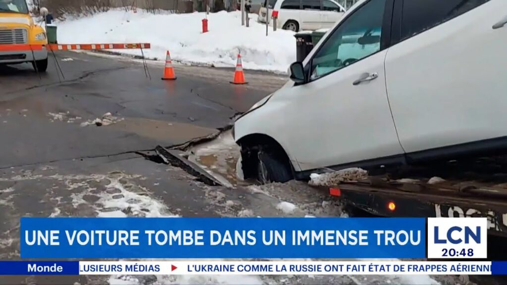 Lisez l’article complet sur notre site: https://www.tvanouvelles.ca/2025/11/25/en-images-un-vehicule-coince-dans-un-enorme-nid-de-poule-a-saguenay